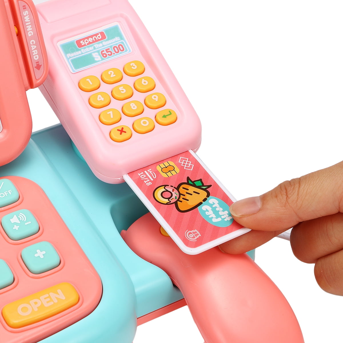 Toy Cash Register For Kids With Checkout Scanner Fruit Card Reader Credit Card Machine Play Money And Food Shopping Play Set Walmart Com